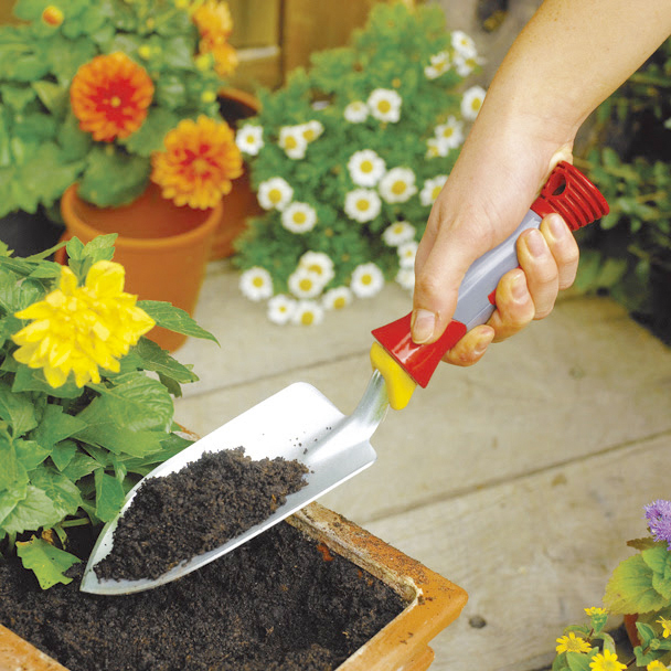 ハンドル付きのミニツールシリーズ。手になじむグリップが作業中も疲れず、またプランターや花壇などでも使いやすく設計されています。