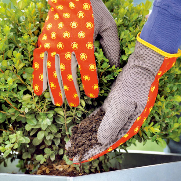 ウルフガルテンオリジナルのガーデニング用グローブ。赤と黄色を基調とした楽しいカラーで、もっとガーデニングを楽しく。