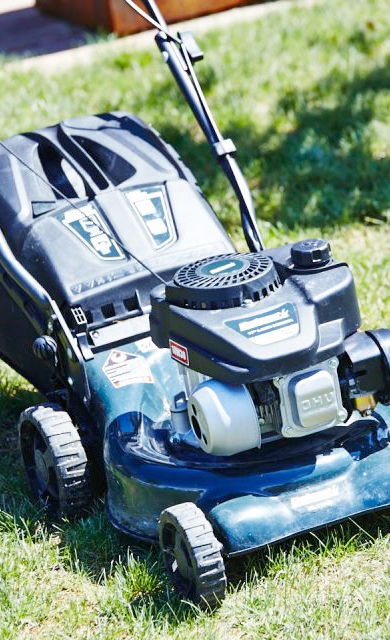 走行レバーを握るだけで自走するので広い敷地はもちろん、起伏のあるお庭や緩やかな傾斜地(最大傾斜15°)でも楽に芝を刈ることができます。車体サイズも手押式と同じでとてもコンパクト。保管場所にも困りません。